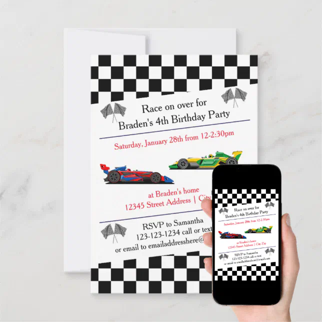 Race Car Birthday Party 3x5 Invitation Zazzle