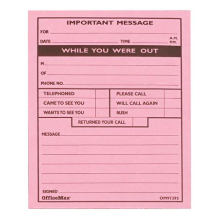 OfficeMax Message Pads 4 14 x 5 12 1 Message Per Page 50 Sheets Pink