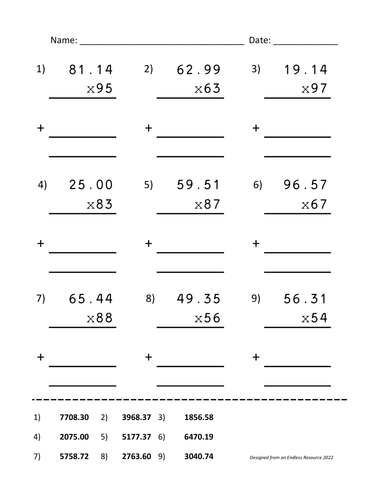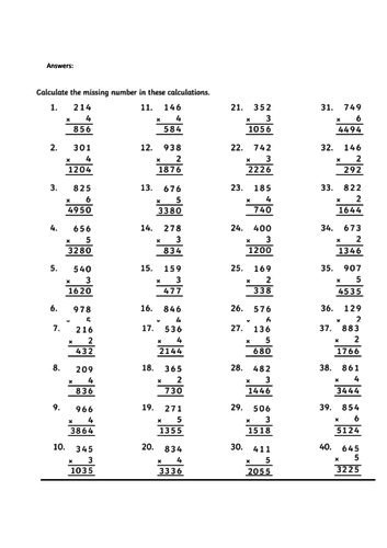 50 Long Multiplication Worksheets Teaching Resources