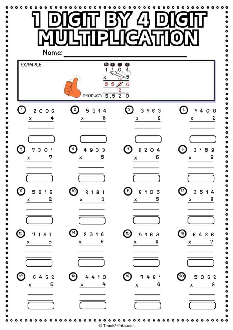 1 Digit by 4 Digit Multiplication Worksheets Teach Prints