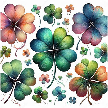 Pattern of Lucky Four Leaf Clovers in Multiple Colors Stock