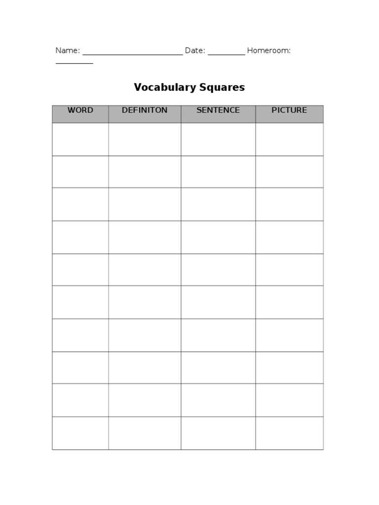 4 Square Vocabulary Template prntbl concejomunicipaldechinu gov co