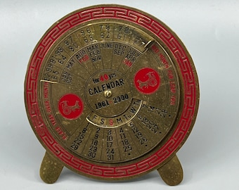 Brass Calendar 40 Year Calendar Vintage Round Brass Desk Etsy