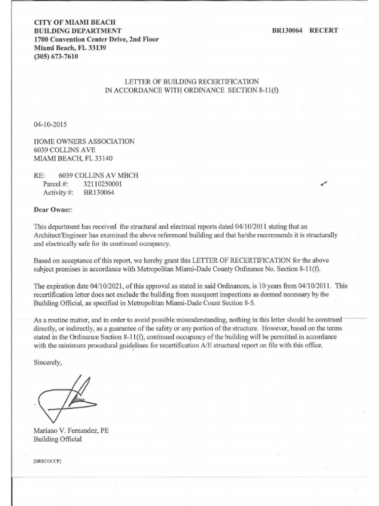 Maison Grande Condominium 40 Year Certification Letter PDF