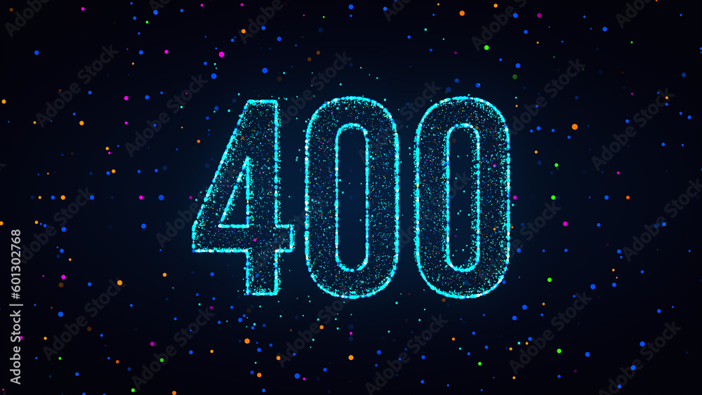 Futuristic Blue Colorful Shiny Number 400 Lines Effect With Square Dots