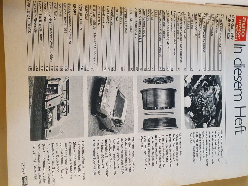 AMS 23/72 Opel Commodore GS/E Alpine A310 VW 412 LE K 70 xa (Gebraucht