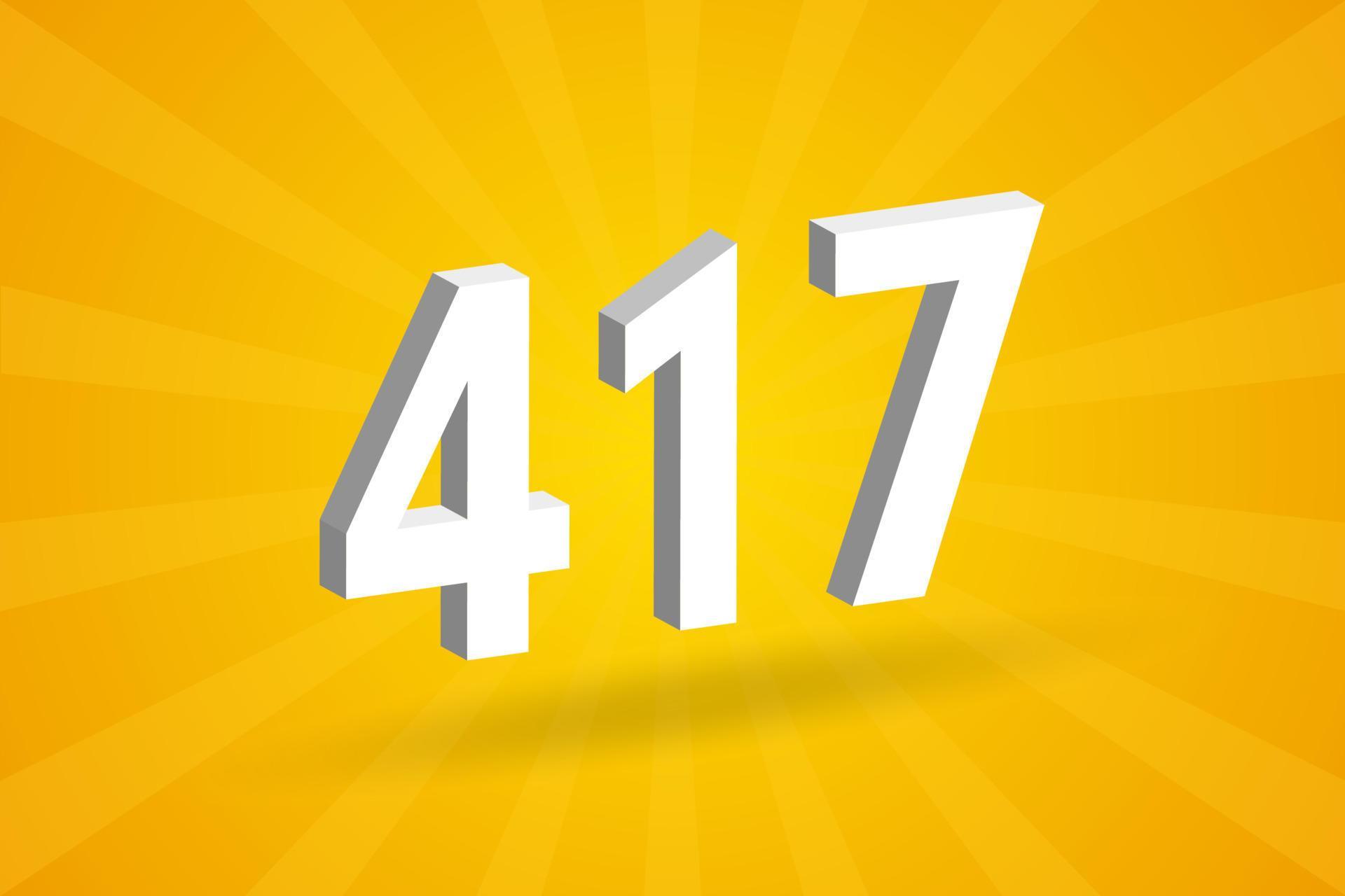 3D 417 number font alphabet White 3D Number 417 with yellow background