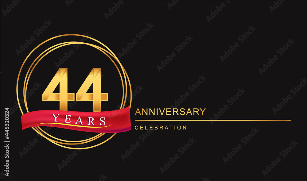 44th years anniversary celebration with golden color and ring red