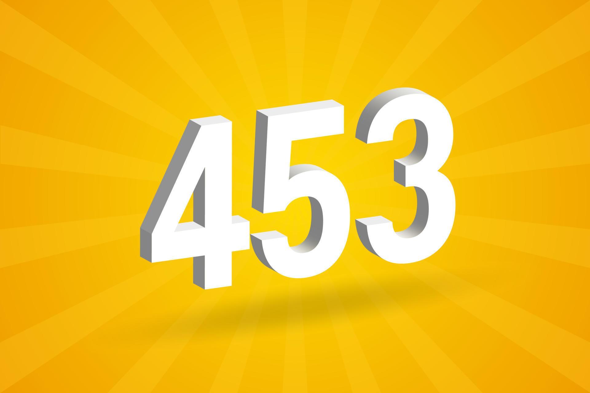 3D 453 number font alphabet White 3D Number 453 with yellow background