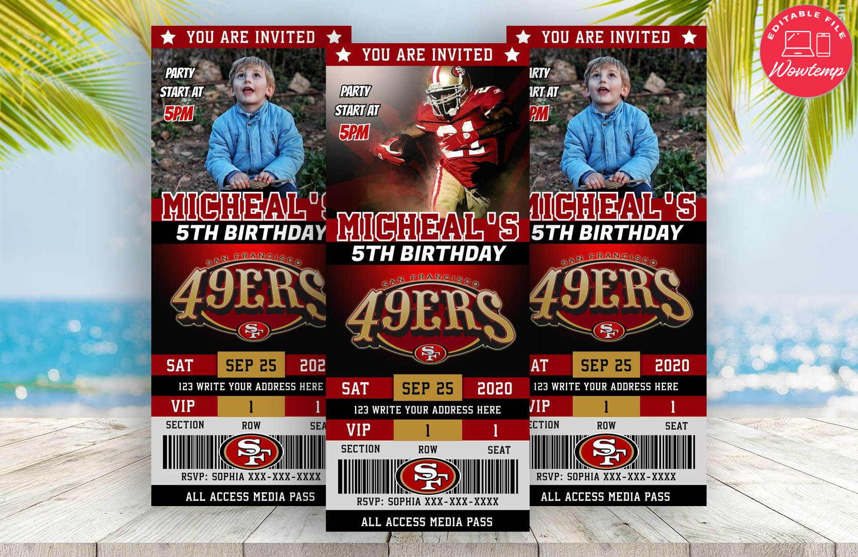 Editable San Francisco 49ers Birthday Ticket Party Invitations Wowtemp