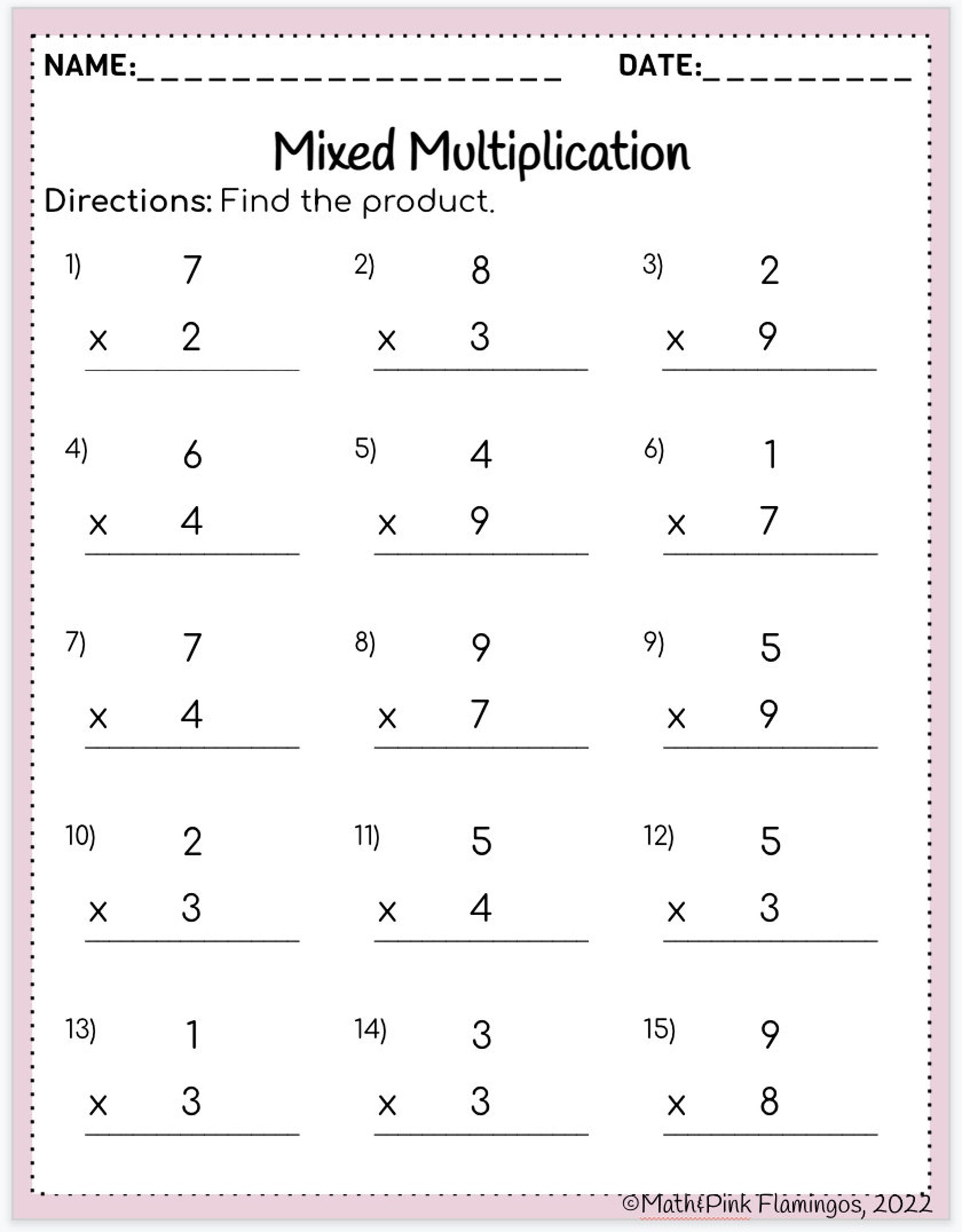 Free Printable Multiplication Worksheets (for Grade 3 to 5)