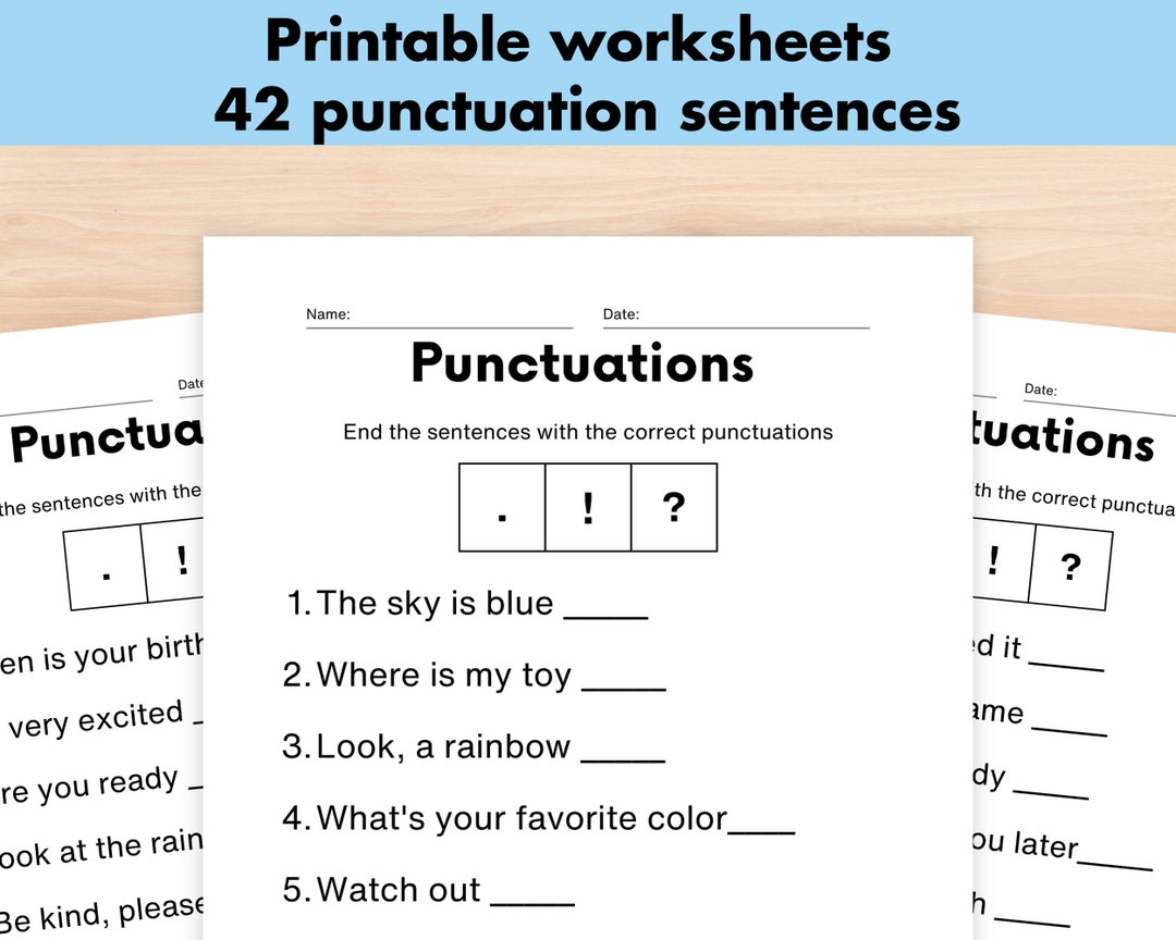 Punctuation Marks Activity Worksheets Kid Early Grammar Etsy
