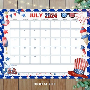 EDITABLE in PDF JULY 2024 Calendar 4th July Calendar 2024 Etsy
