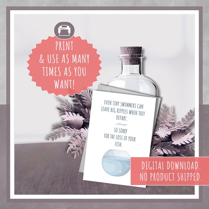 Small Fish Condolence Card Printable Pet Fish Loss Gifts Print at
