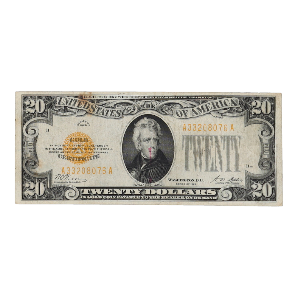 1928 $20 Twenty Dollar Gold Certificate U S Bank Certificate