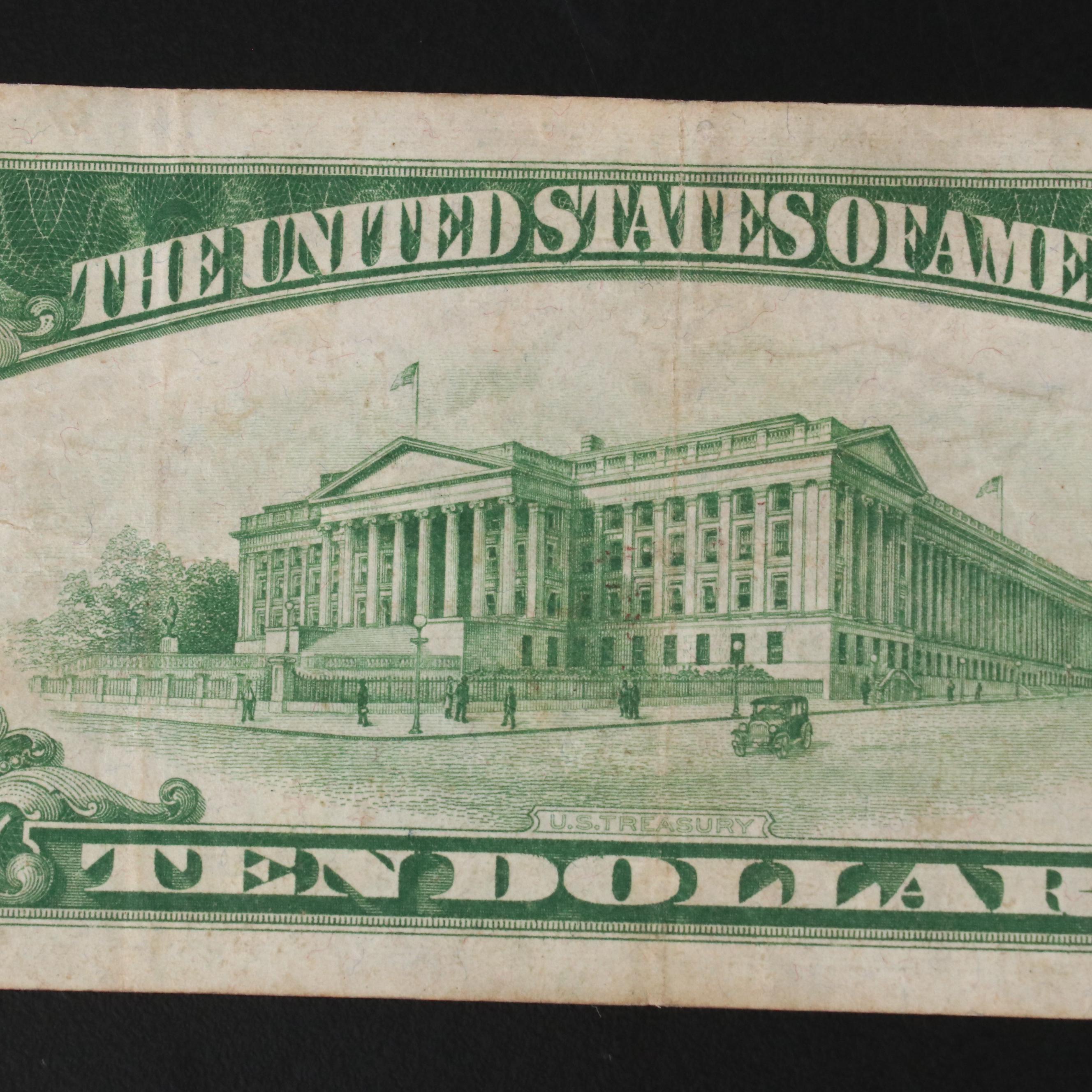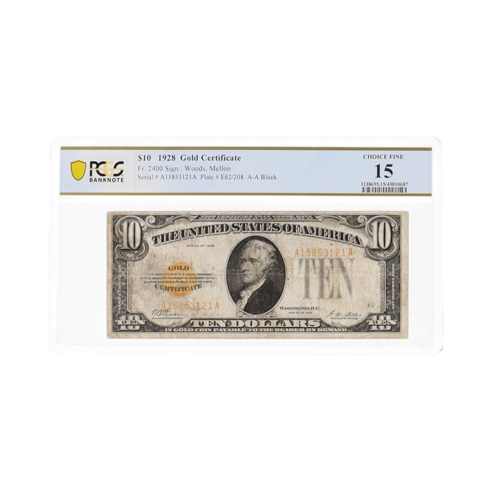 1928 $10 Ten Dollar Gold Certificate U S Bank Note (PCGS CF15