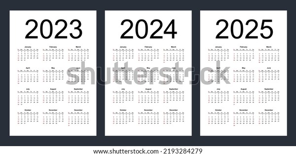 Calendar 2022 2023 2024 2025 year week starts Vector Image
