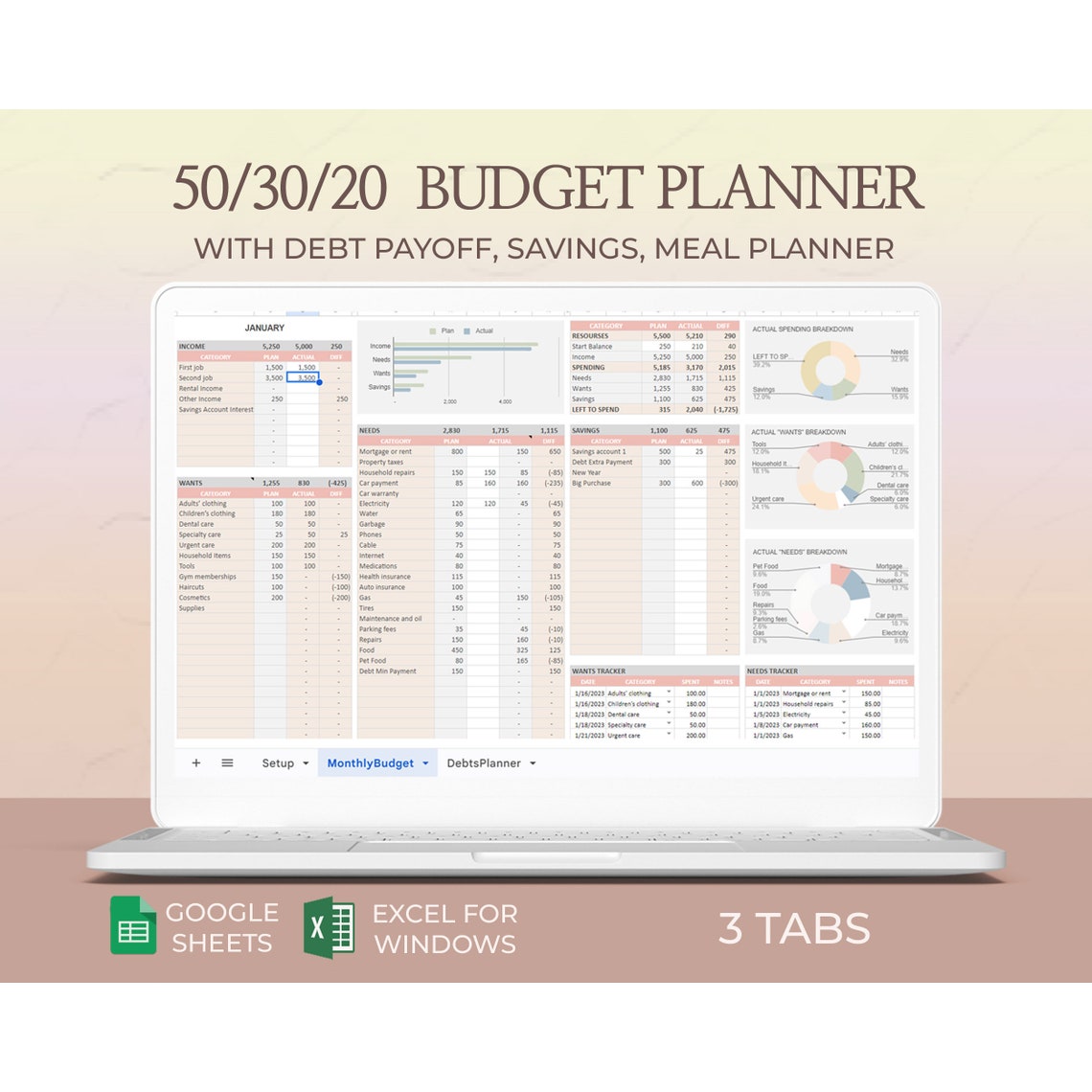 Free 50/30/20 Budget Template Download in Excel Google Sheets