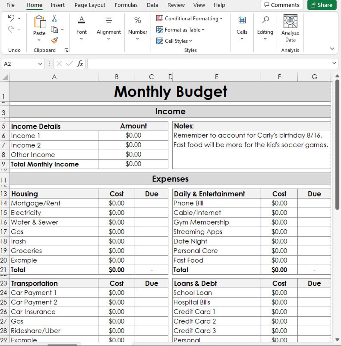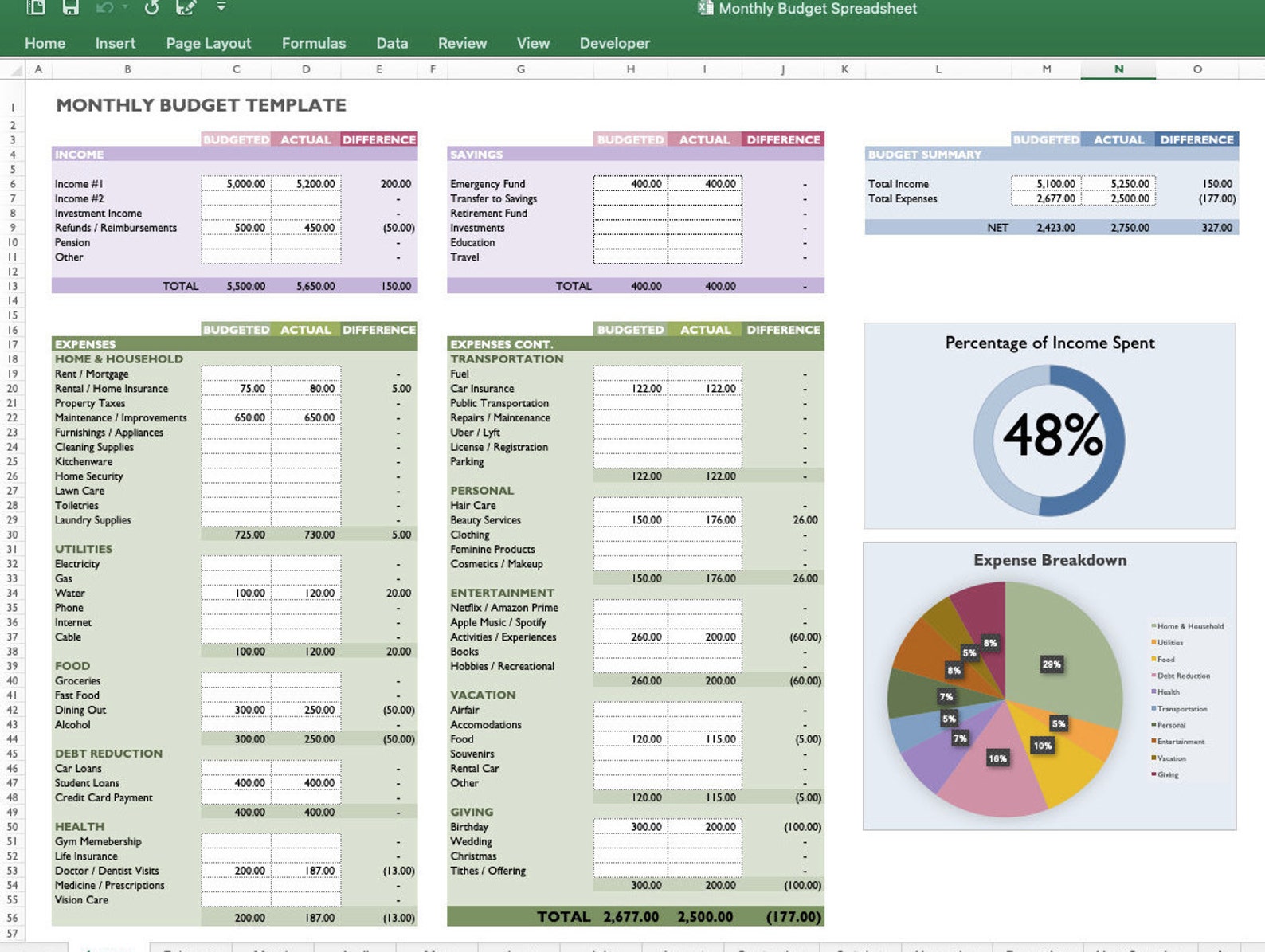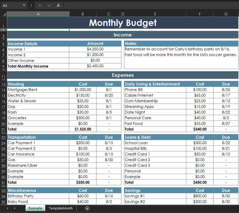 Monthly Budget Spreadsheet Digital Budget Excel Budget Template Etsy