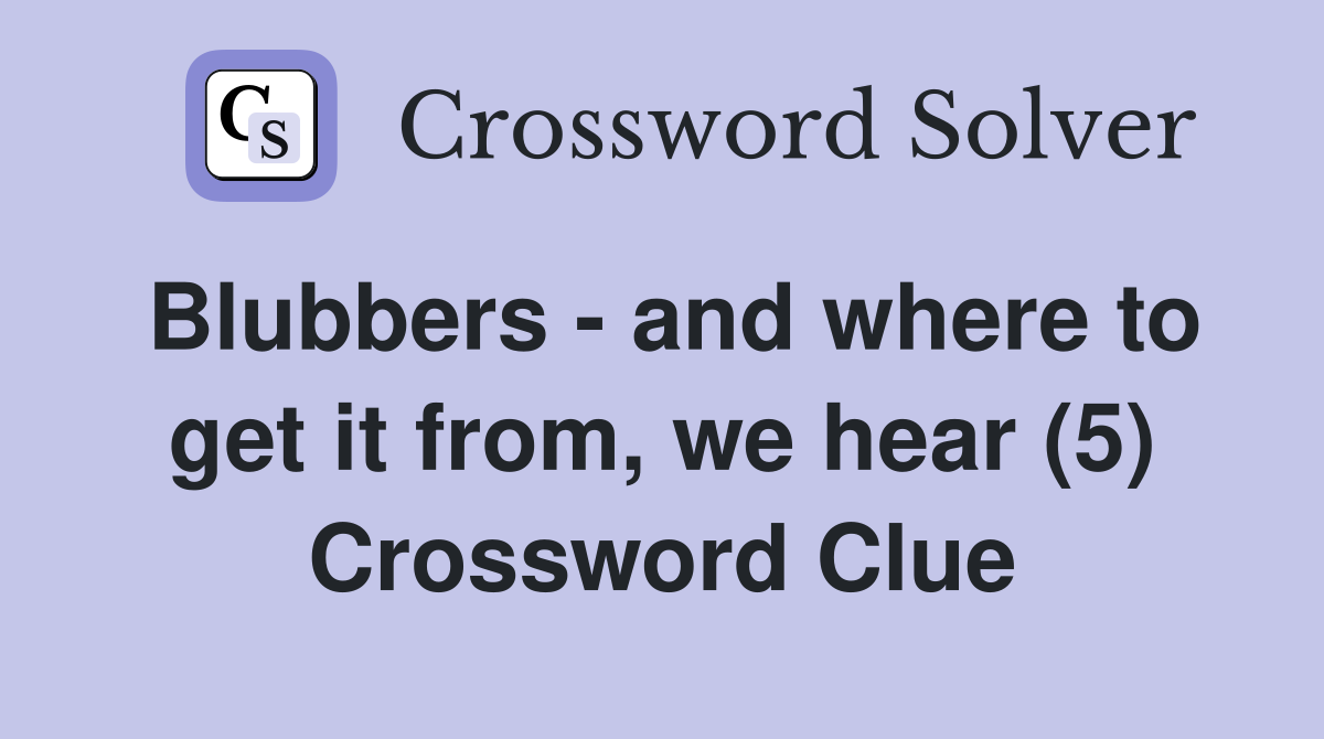 Blubbers and where to get it from we hear (5) Crossword Clue