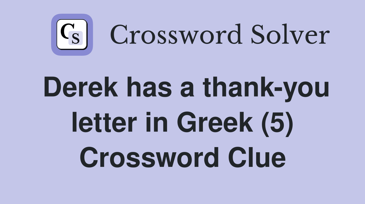 Derek has a thank you letter in Greek (5) Crossword Clue Answers