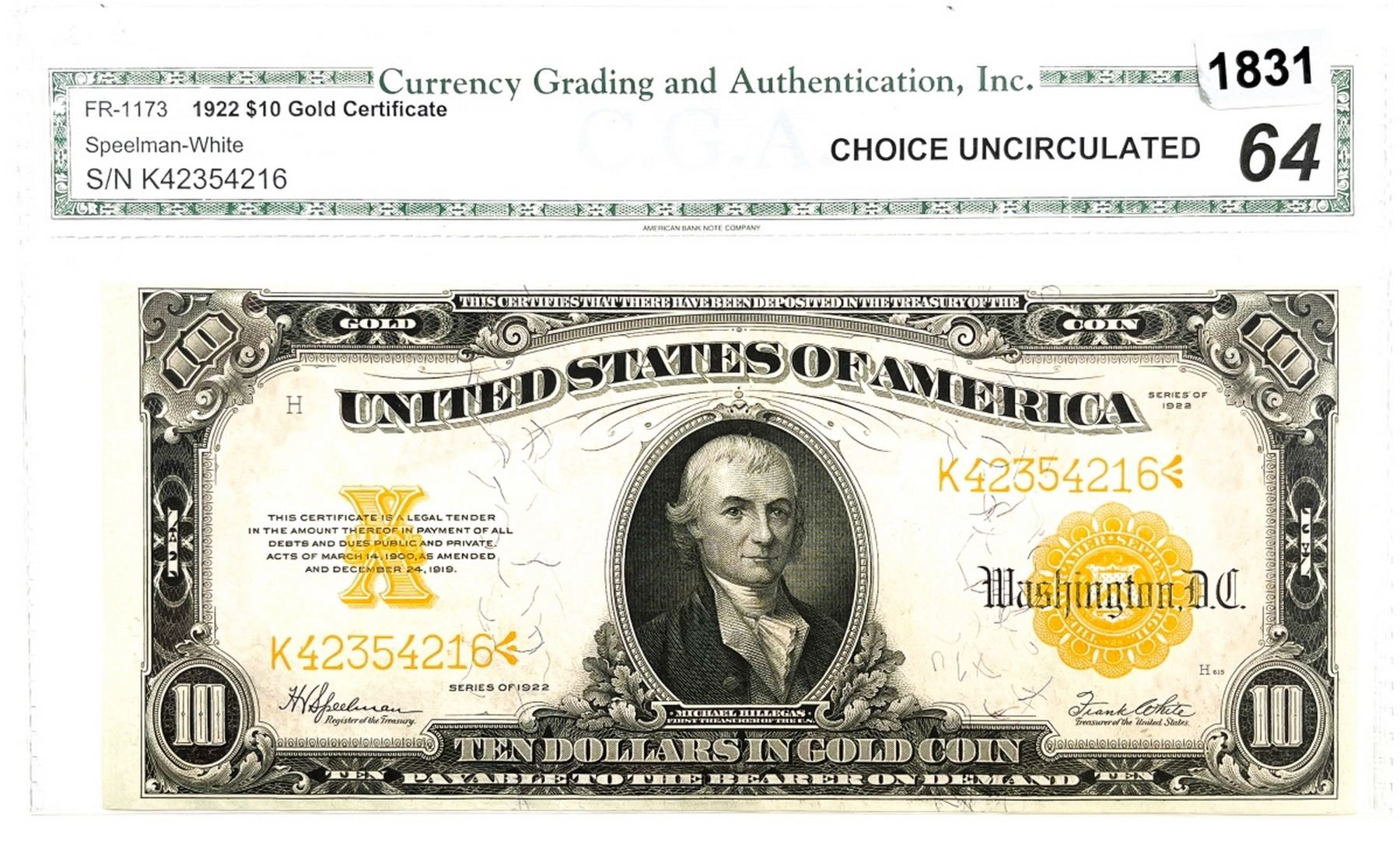 US Gold $10 Large 1922 Year Certificates for sale eBay