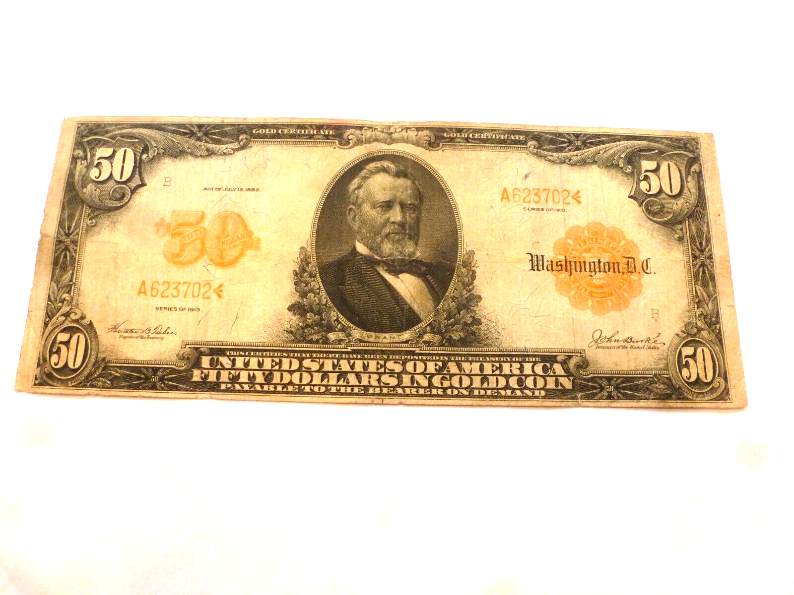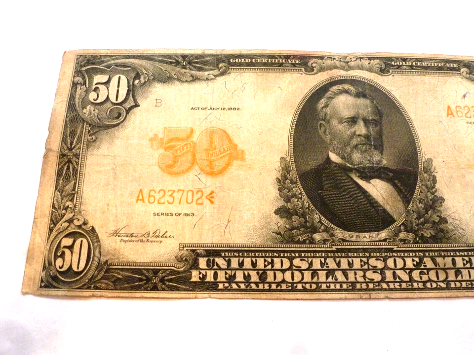 1913 $50 DOLLAR GOLD CERTIFICATE FR 1199 LARGE NOTE TEEHEE BURKE VERY
