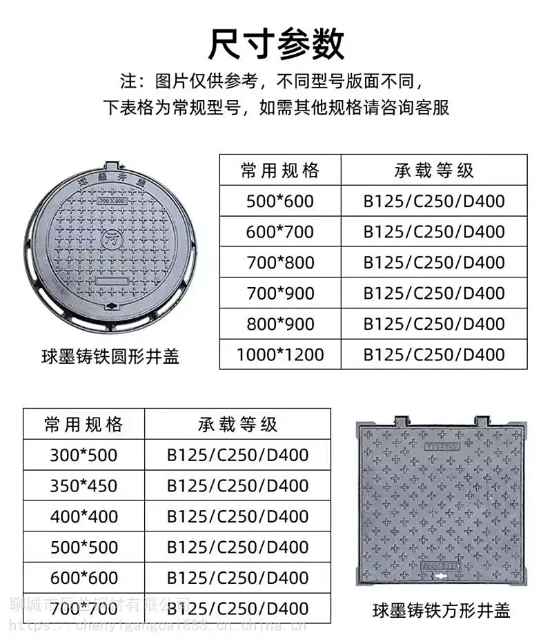 轻型重型铸铁500*600圆形井盖承重标准A15 B125 C250 D400 F900