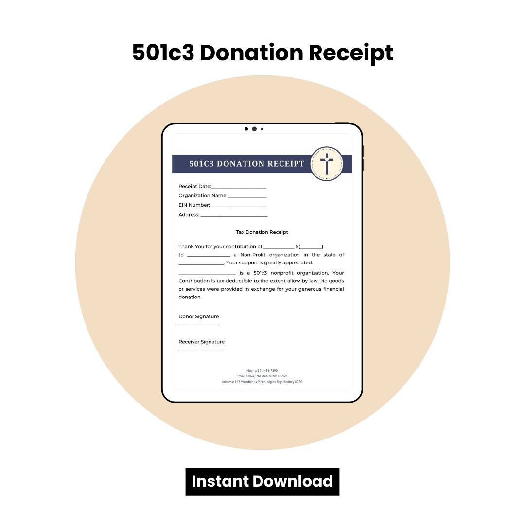 501c3 Donation Receipt Template Printable pdf Word pack Etsy