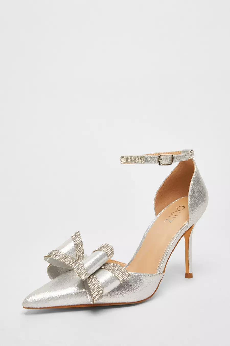 Silver Shimmer Diamante Bow Court Heels QUIZ Clothing