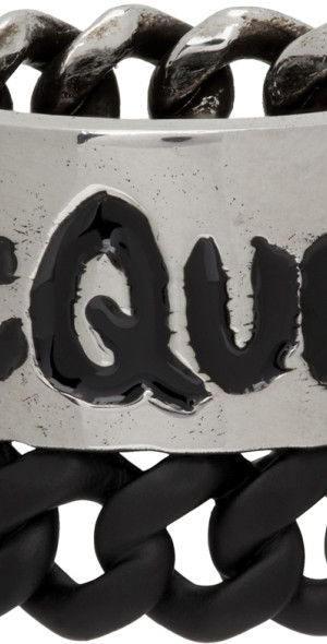 Alexander McQueen Silver Black Gaff Chain Ring