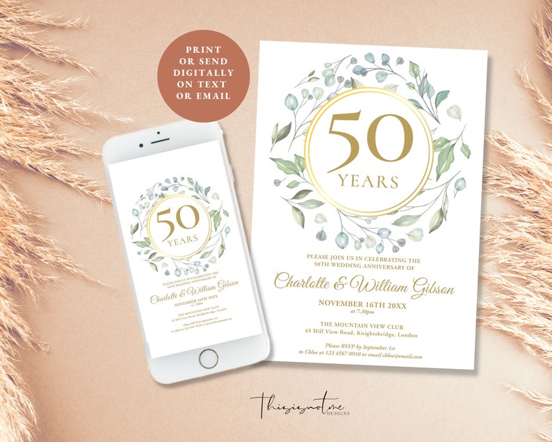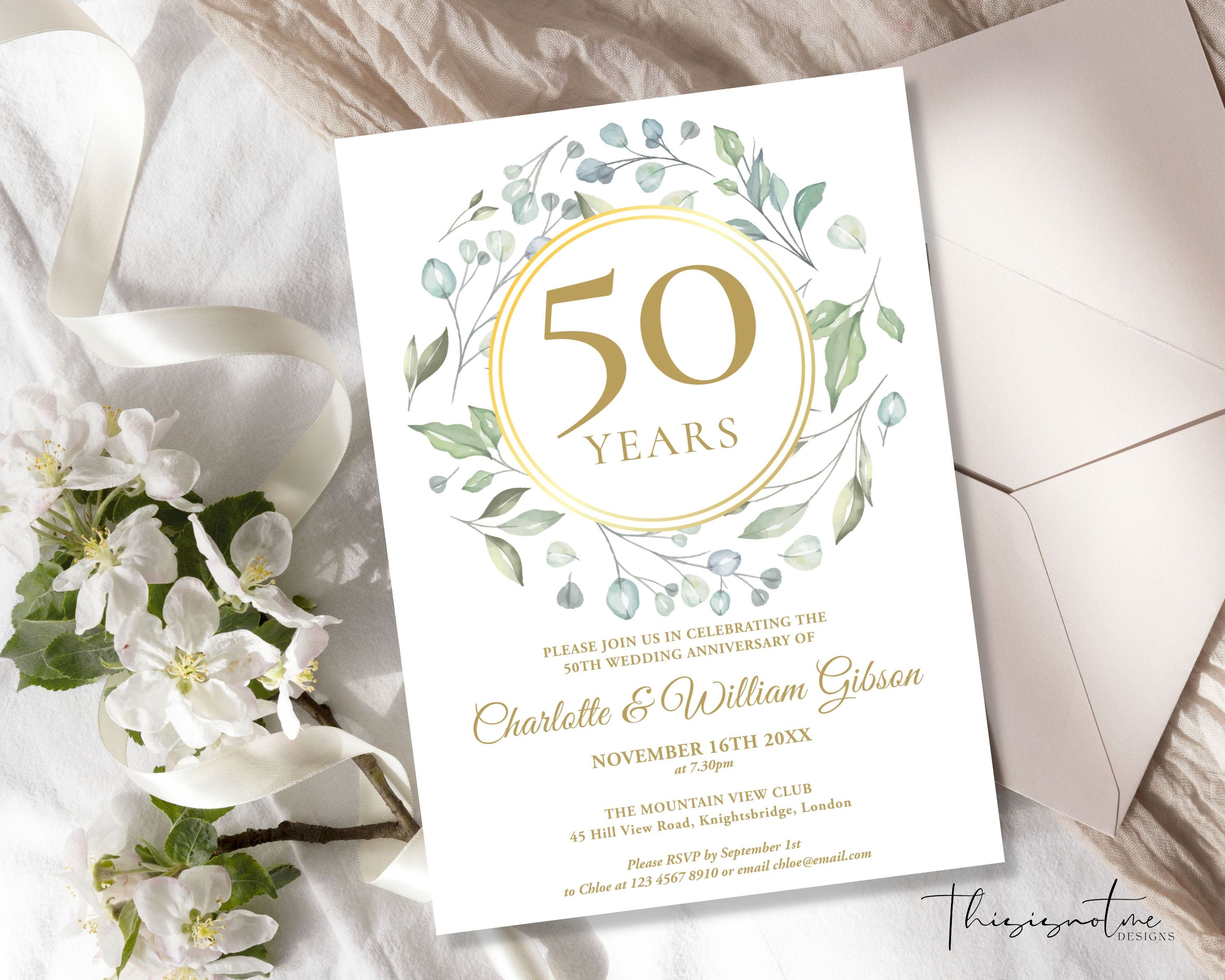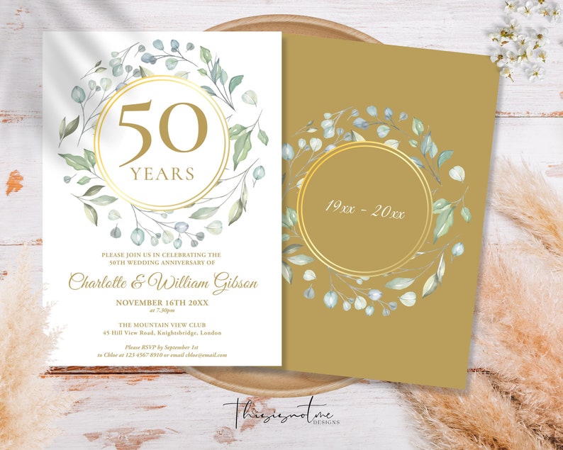 50th Anniversary Invitation Template Greenery Anniversary Etsy