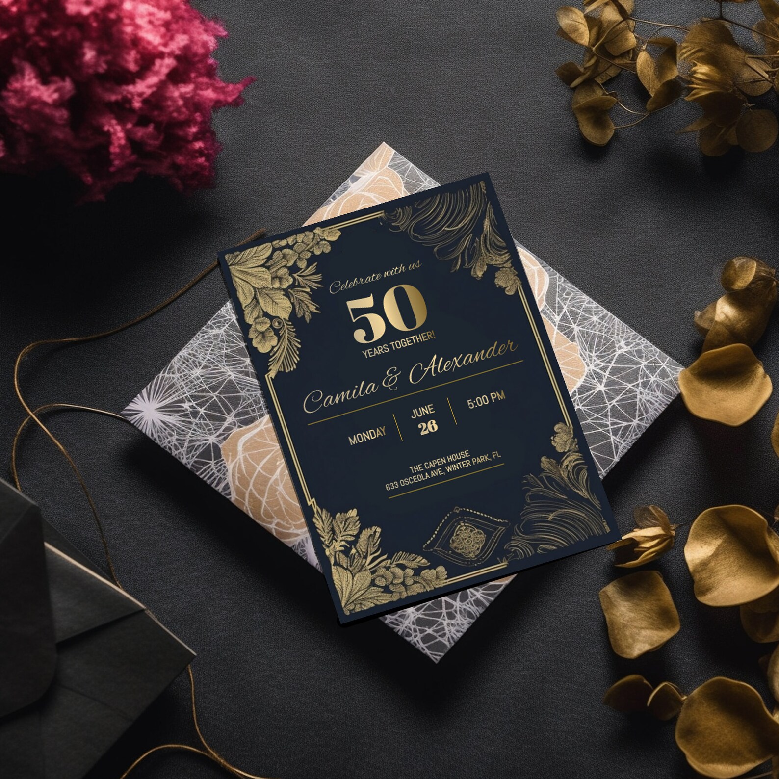 Free Classic 50th Anniversary Event Invitation Template to Edit Online
