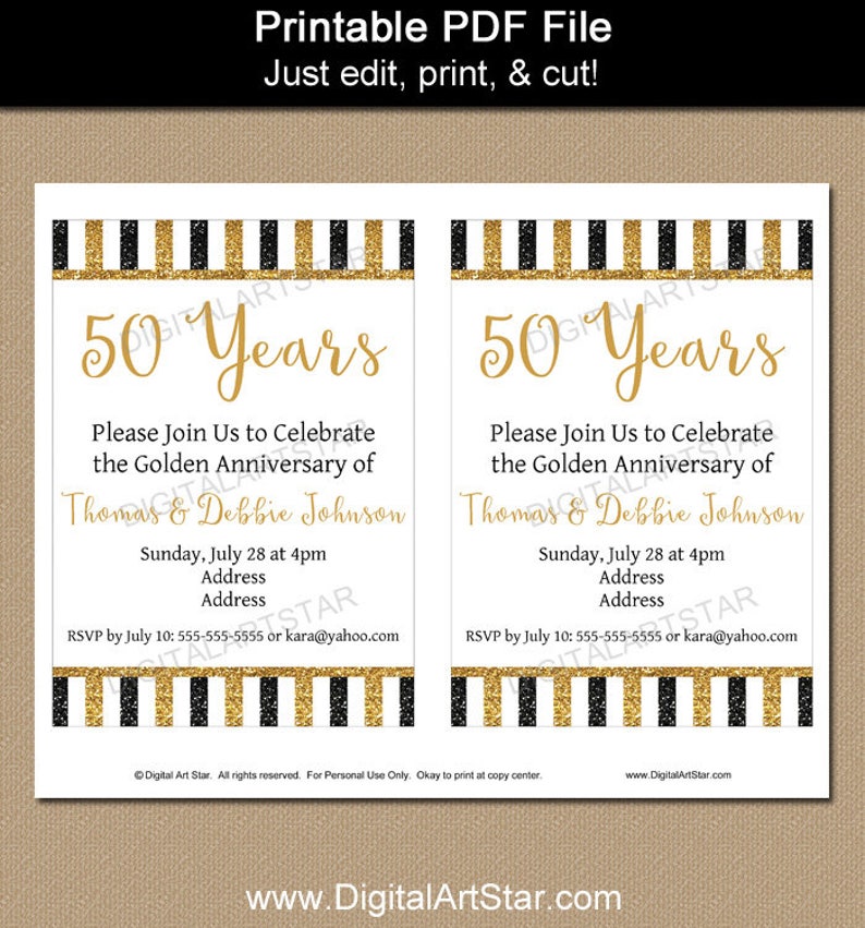 50th Anniversary Invitation Template Golden Anniversary Party Etsy