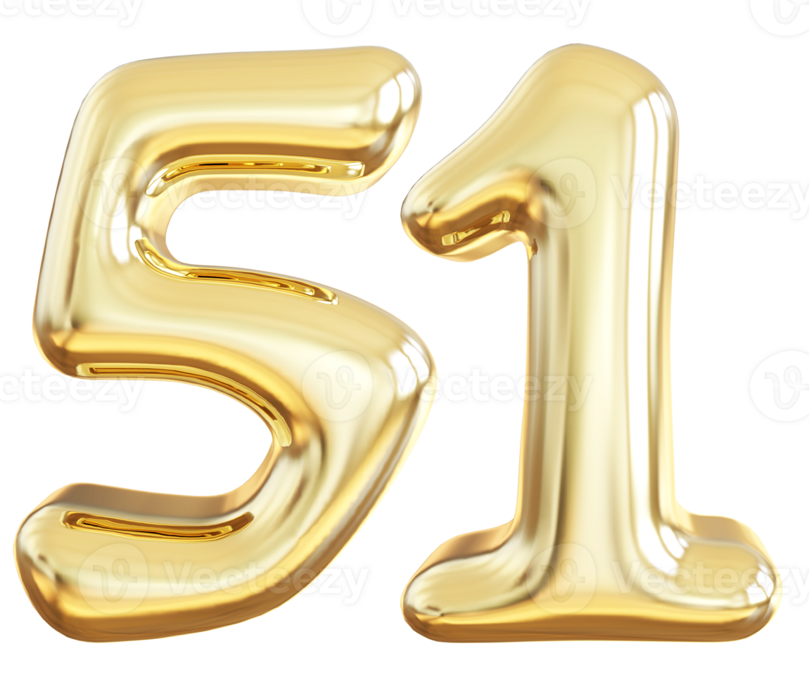 Gold 3d number 51 36304320 PNG