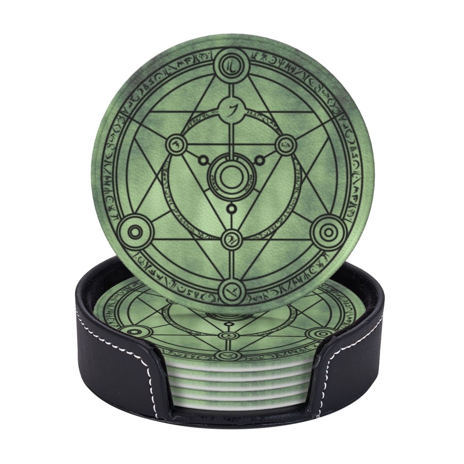 LNWH Coasters Mystic Rune Alchemy Leather Round Coasters Set of 6 for