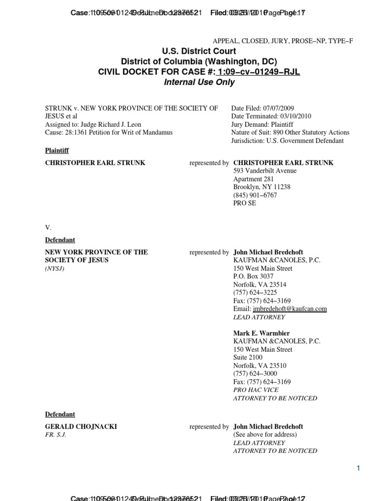 U S District Court District of Columbia (Washington DC) Civil Docket