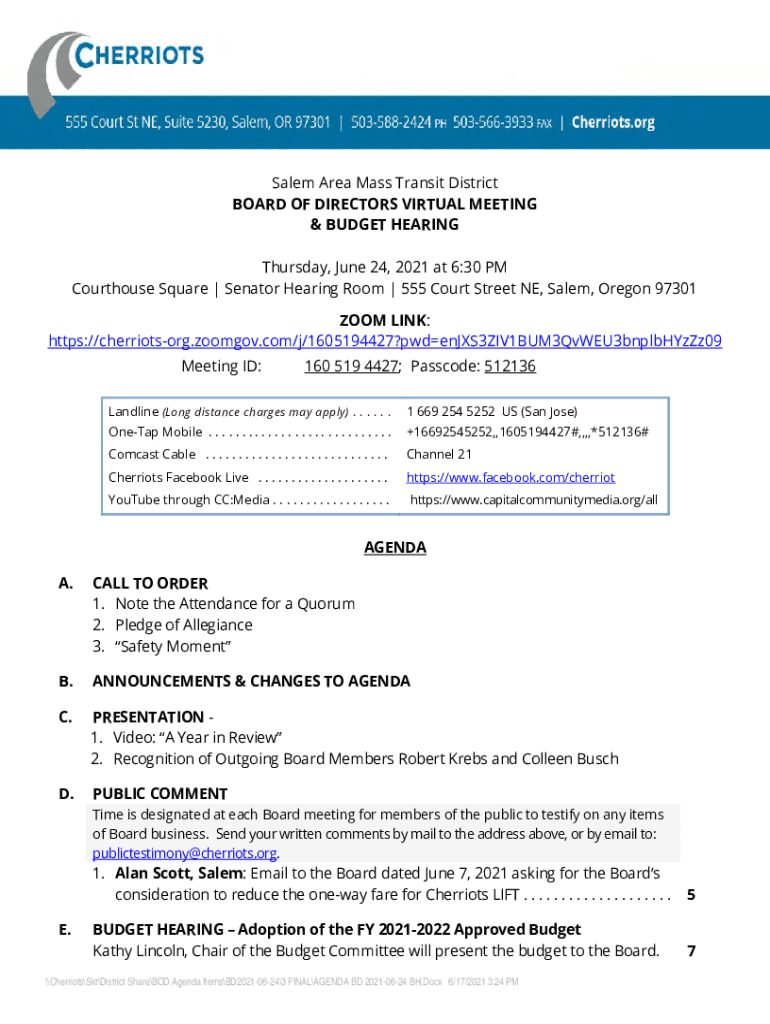 Fillable Online SALEM AREA MASS TRANSIT DISTRICT BOARD Cherriots