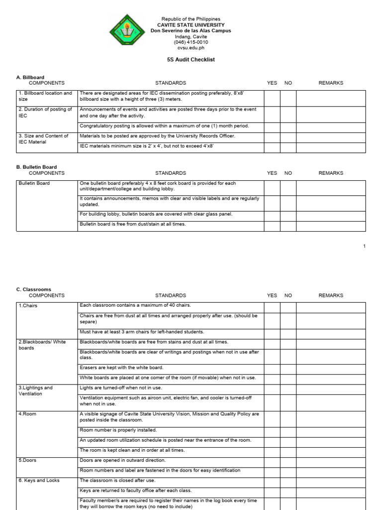 5S Audit Checklist Actual Audit PDF Public Toilet Libraries