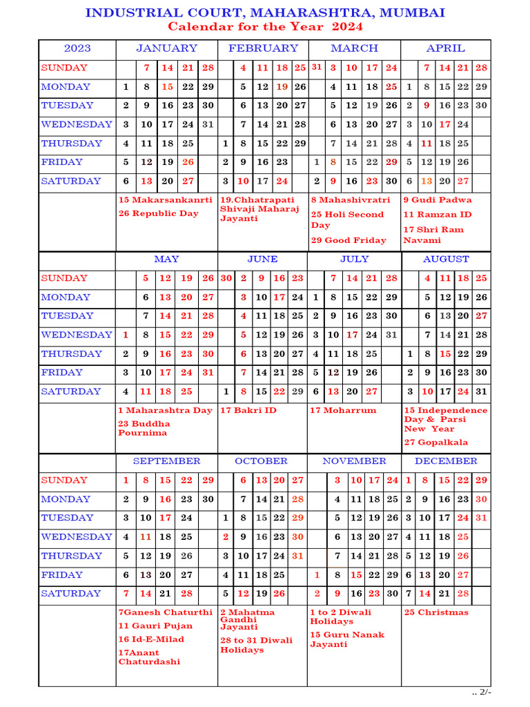 Court Holiday Calendar