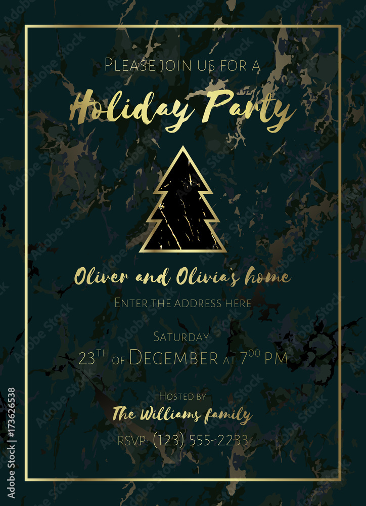 Invitation to a holiday party White and black marble background gold