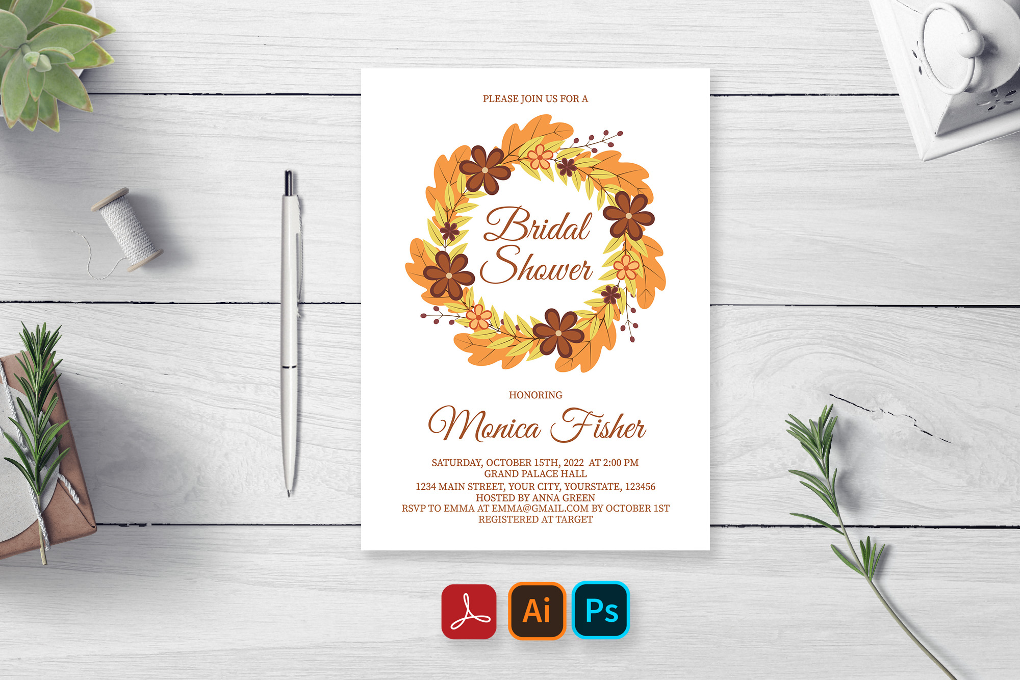 Fall Bridal Shower Invitation Card Editable Template Inspire Uplift