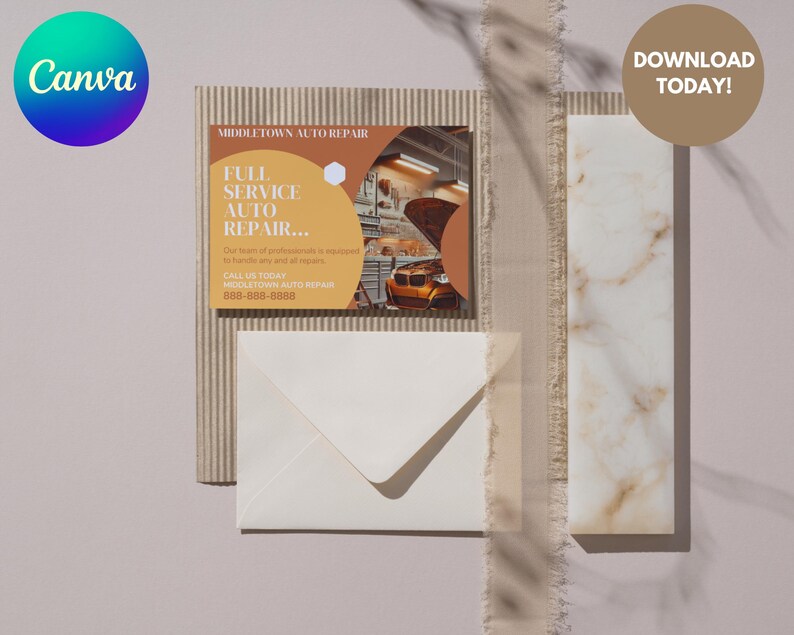 Auto Repair Shop Flyer 5x7 Mailer Postcard Template Editable Canva