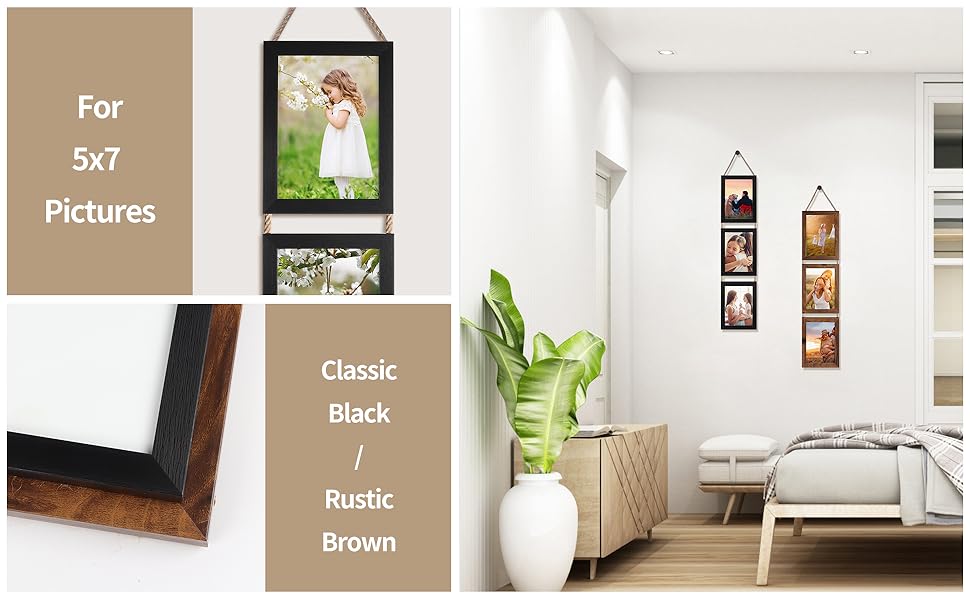 Amazon com: Lavezee 5x7 Hanging Collage Picture Frames Set of 2 Walnut