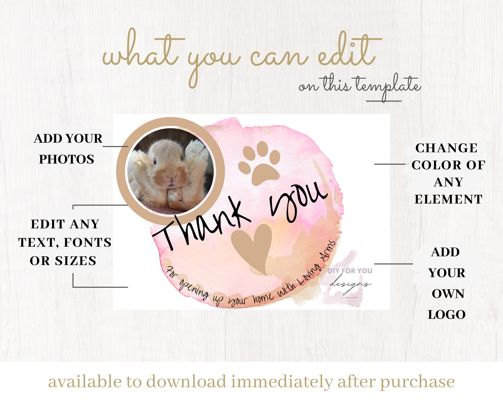 Editable 7 X 5 Thank You Card Template Thank You Etsy