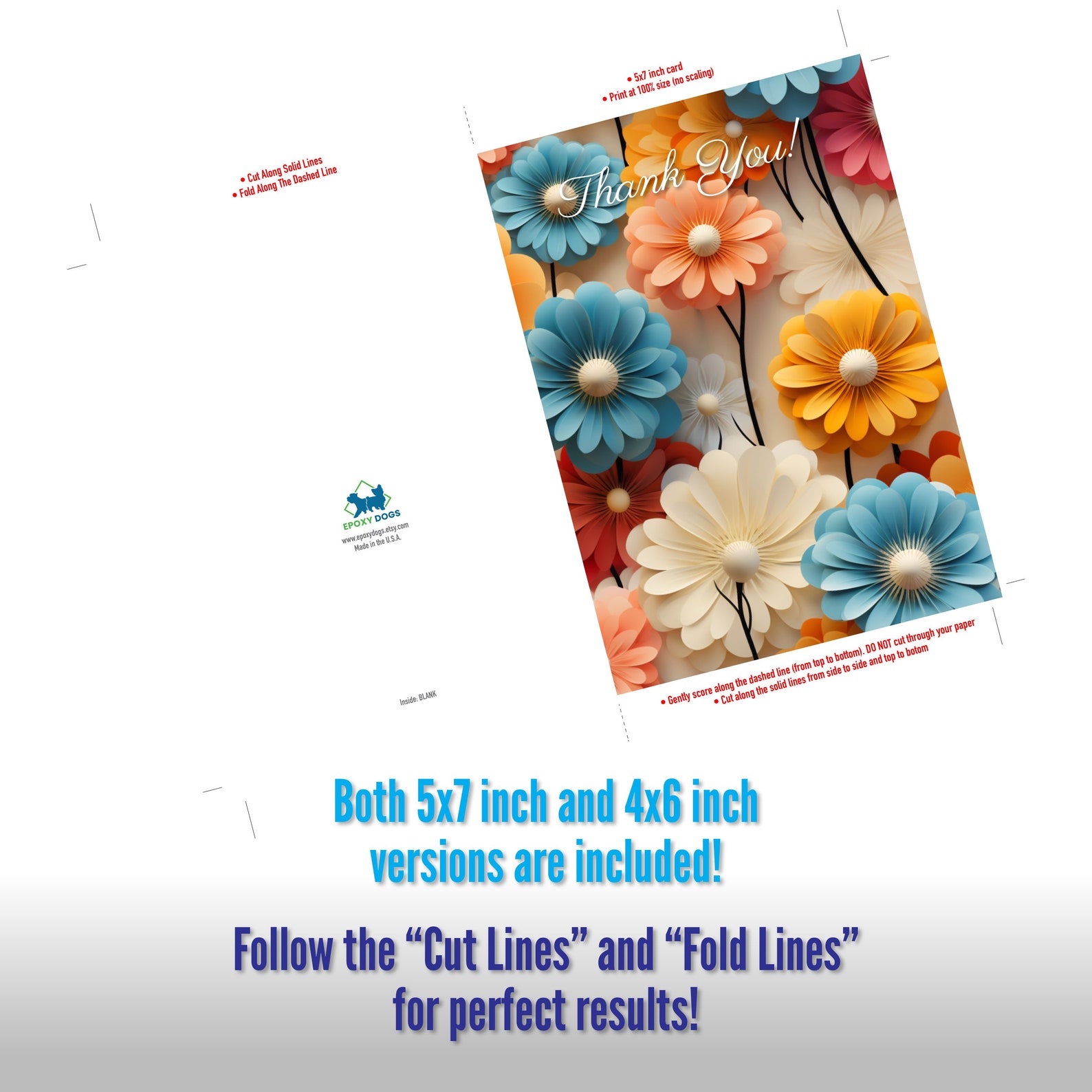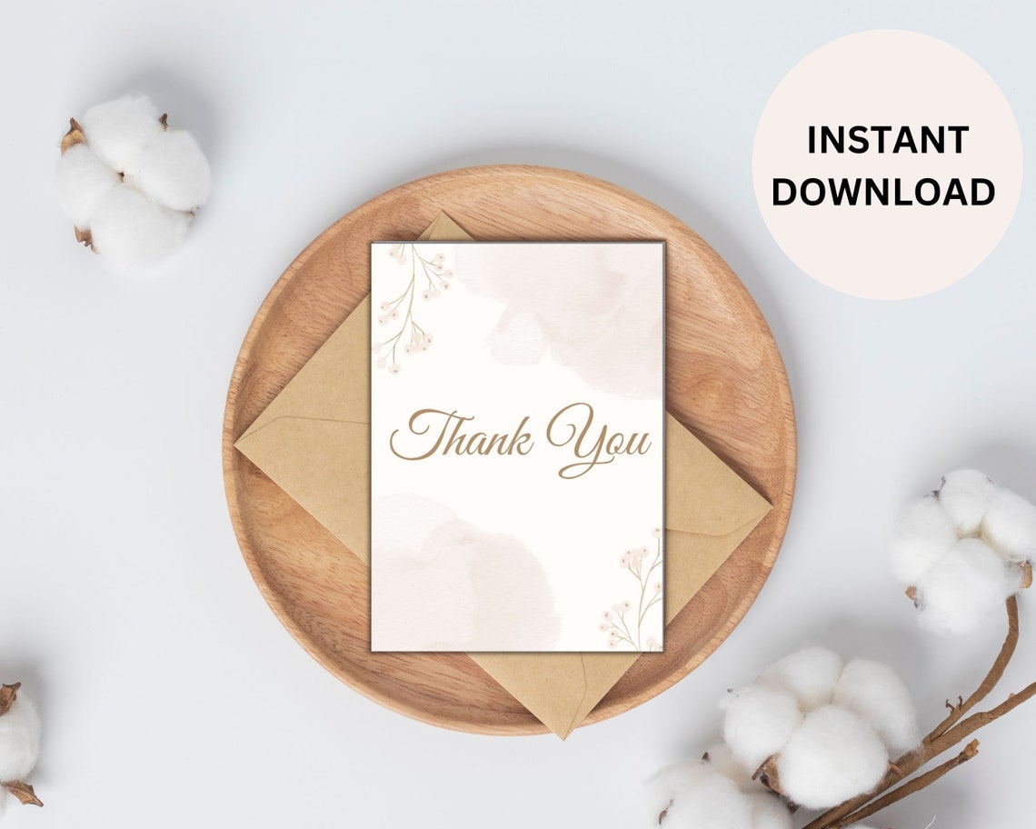 Thank You Card Printable Digital Download High Resolution 5x7 and