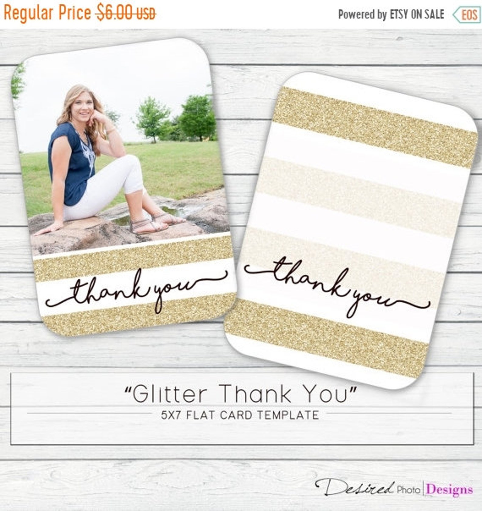 Glitter Thank You 5x7 Flat Card Template Etsy