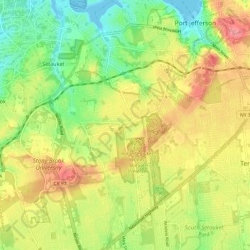 East Setauket地形图、海拔、地势