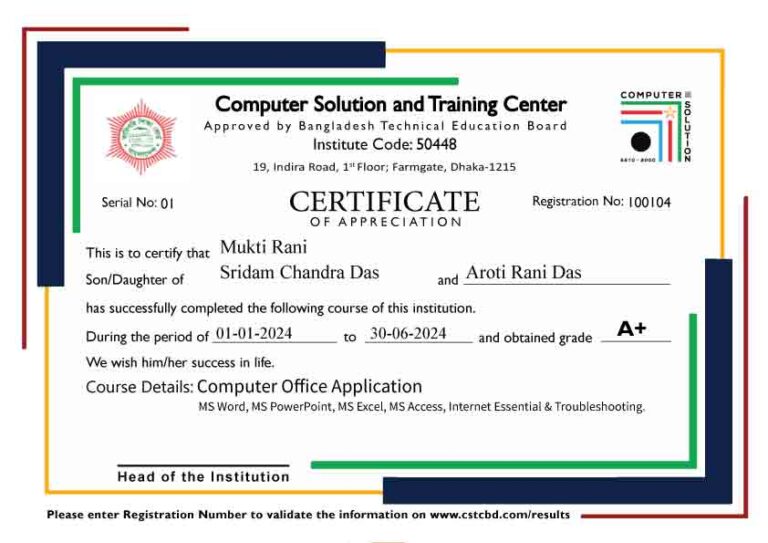 ৬ মাস মেয়াদী কম্পিউটার কোর্সের ফলাফল ২০২৪ । 6 Month Computer Course