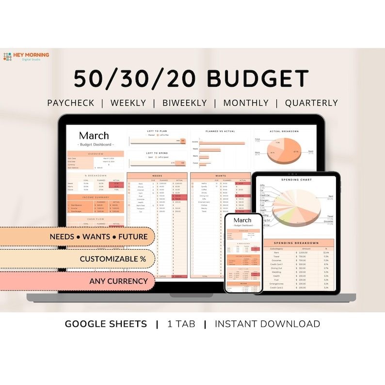 50/30/20 Budget Template in Google Sheets Budget Calculator